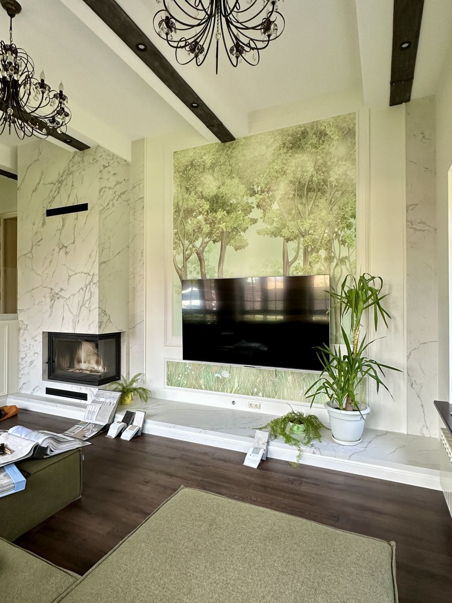 Наши клиенты не просто мечтали об этом - они воплотили свою идею в жизнь, украсив стены ЭКО фреской с изображением леса из дизайнерской коллекции «Аврора» от ОРТОГРАФ. Теперь их стены шепчут о прохладе тенистых рощ, о пении птиц, о запахе влажной земли после дождя. Это место, где можно позволить себе погрузиться в объятия природы!