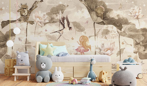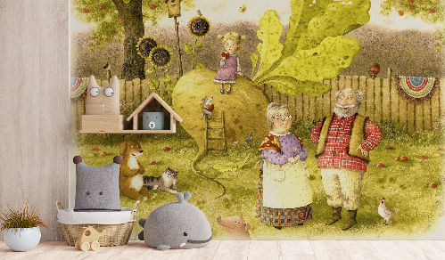 Все изображения из коллекции «В гостях у сказки» могут быть выполнены на любой текстуре фресок и фотообоев, в том числе и единым полотном (без стыков) до 50,0 х 3,18 м. Особенно рекомендуем бесшовные обои и фрески ECO, которые абсолютно безопасны и имеют «Экологический сертификат соответствия.