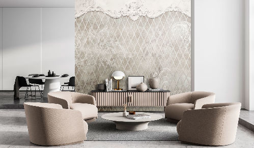Для того, чтобы максимально передать эффект бесконечности сюжетов, мы рекомендуем остановить свой выбор на фресках и бесшовных фотообоях от компании «ОРТОГРАФ». Максимальный размер единого полотна (без стыков) 10х3,14м. Вы также можете выбрать в качестве основы шовные фотообои. Не менее стильно и оригинально дизайны будут смотреться на фотоплитке и мозаике Fabrizio Roberto®.